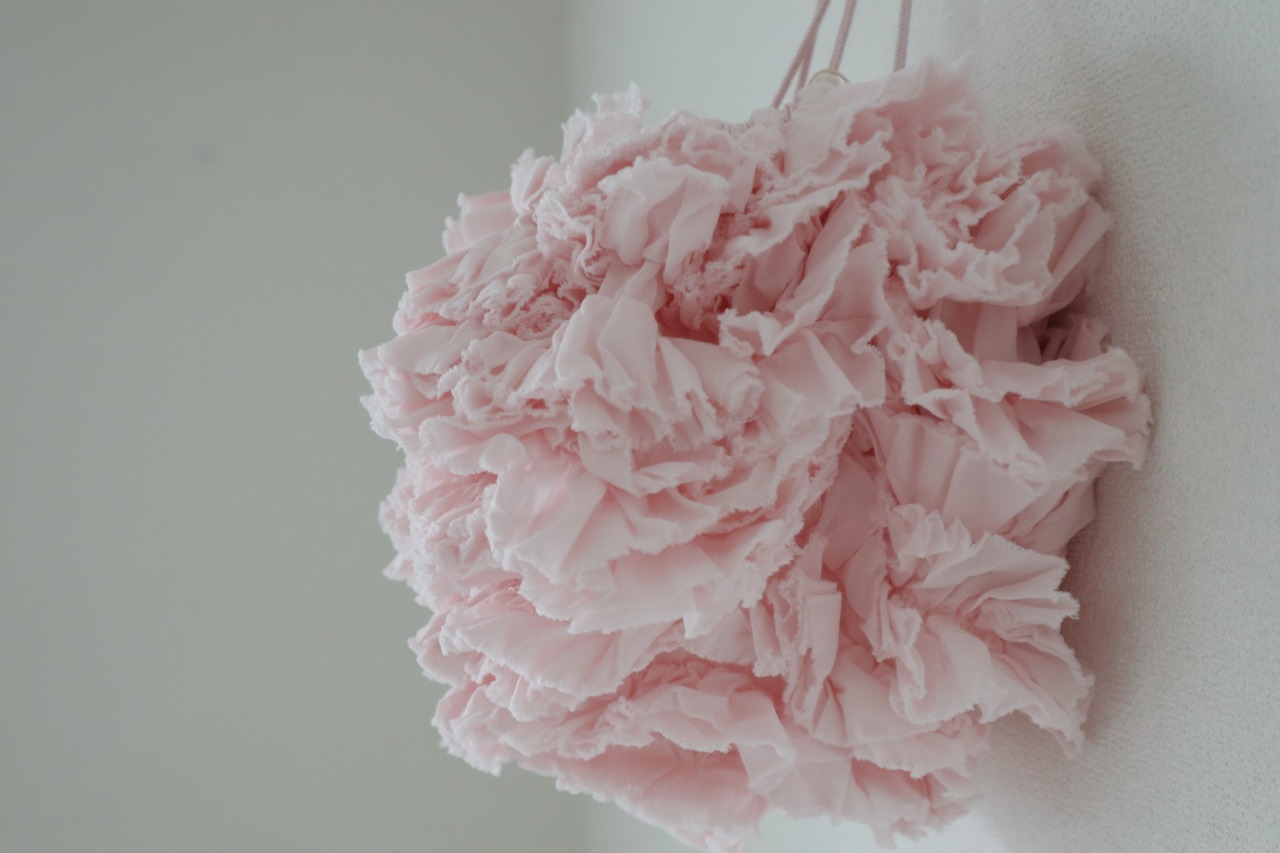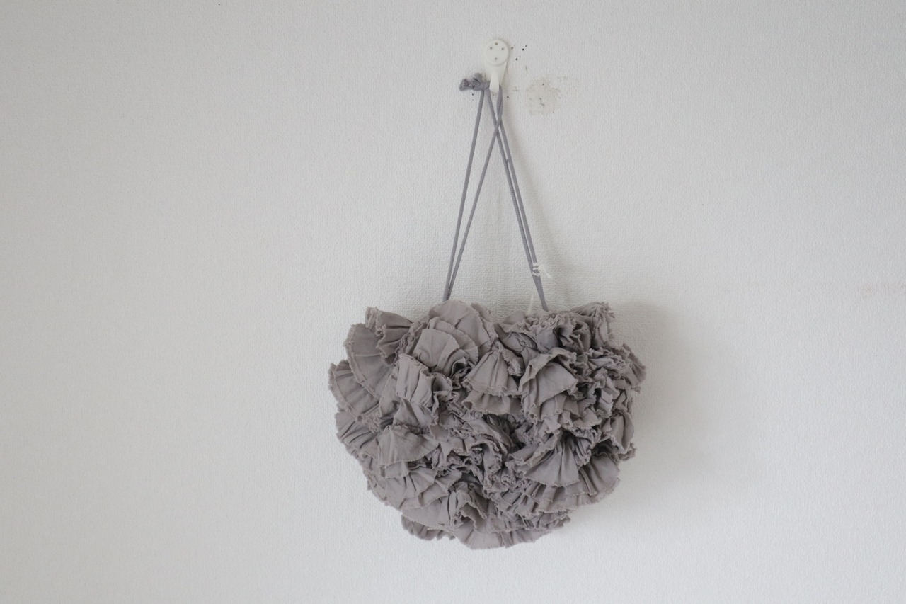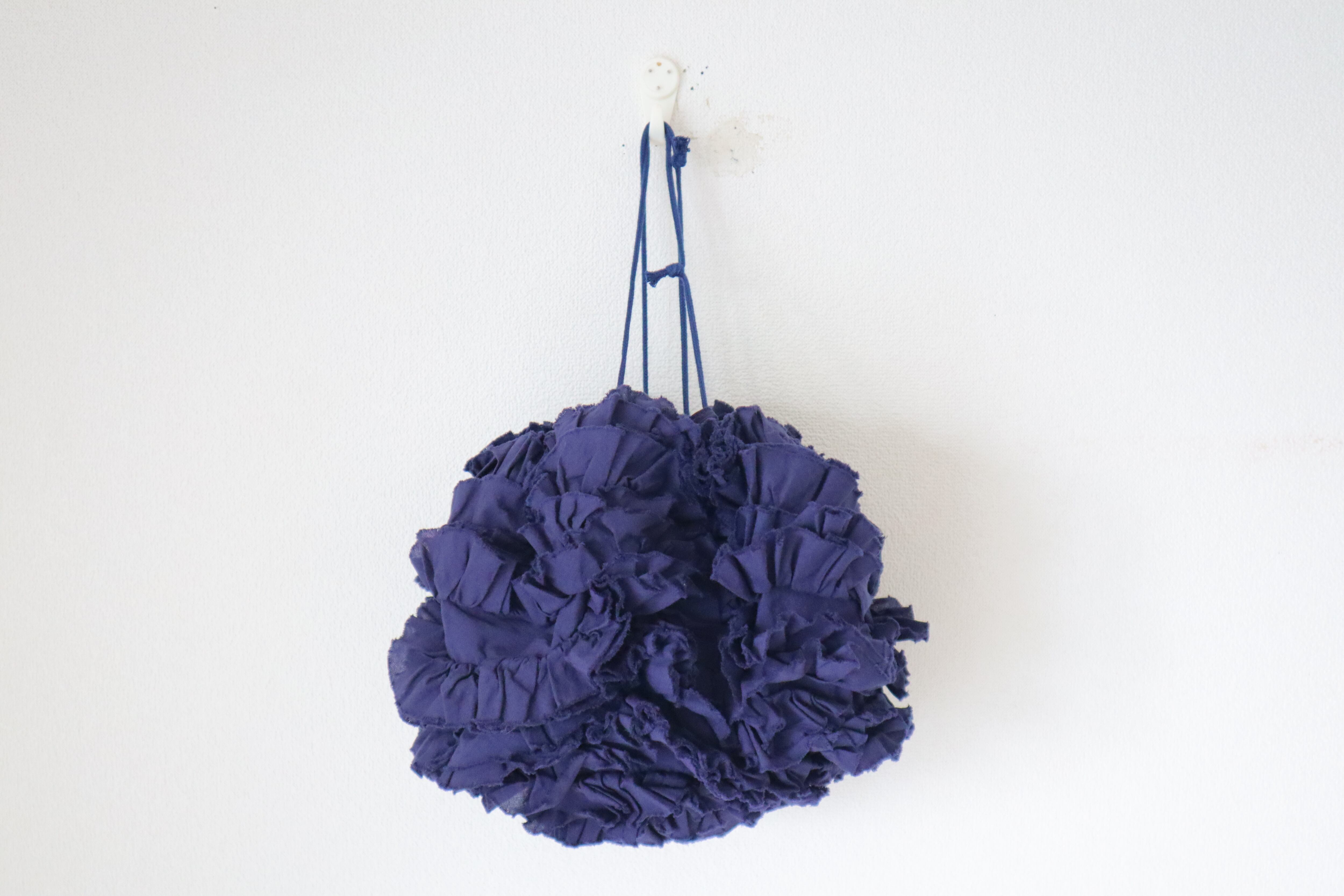 ガーメントダイ素材で作られた、フリルとポンポンが可愛らしい花柄バッグ。そのカラフルなデザインは、まるで春が詰まったような爽やかさを演出してくれます。普段使いからおでかけまで、様々なシーンで活躍します。
