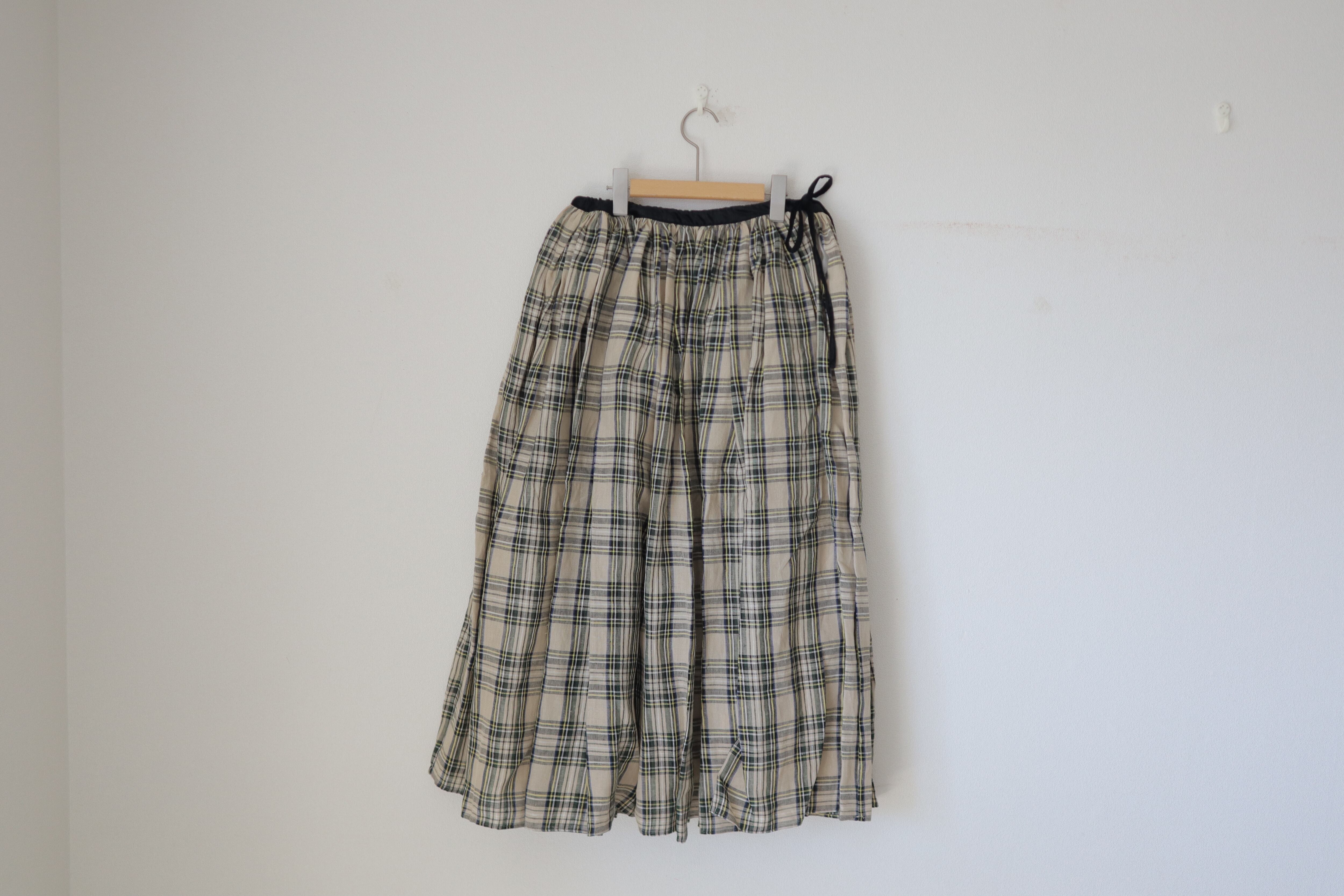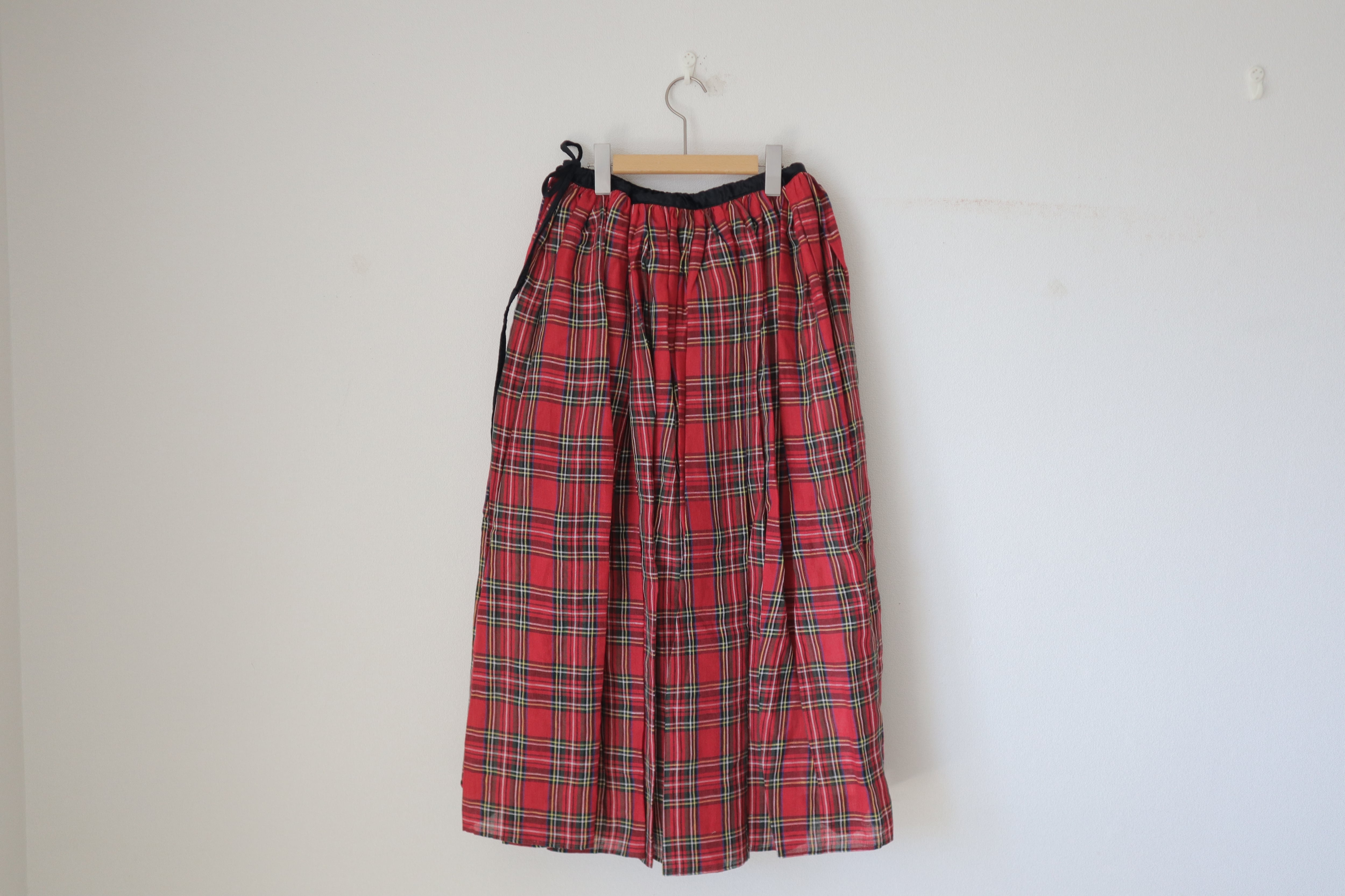 クラシックな雰囲気漂うタータンチェックギャザースカートです。ウエスト部分はベルベット素材のリボンでのギャザーデザインが施されており、立体感のあるシルエットが特徴。長めの丈で足首までしっかりと覆うので、気になる部分をカバーしつつ、女性らしいラインを演出します。