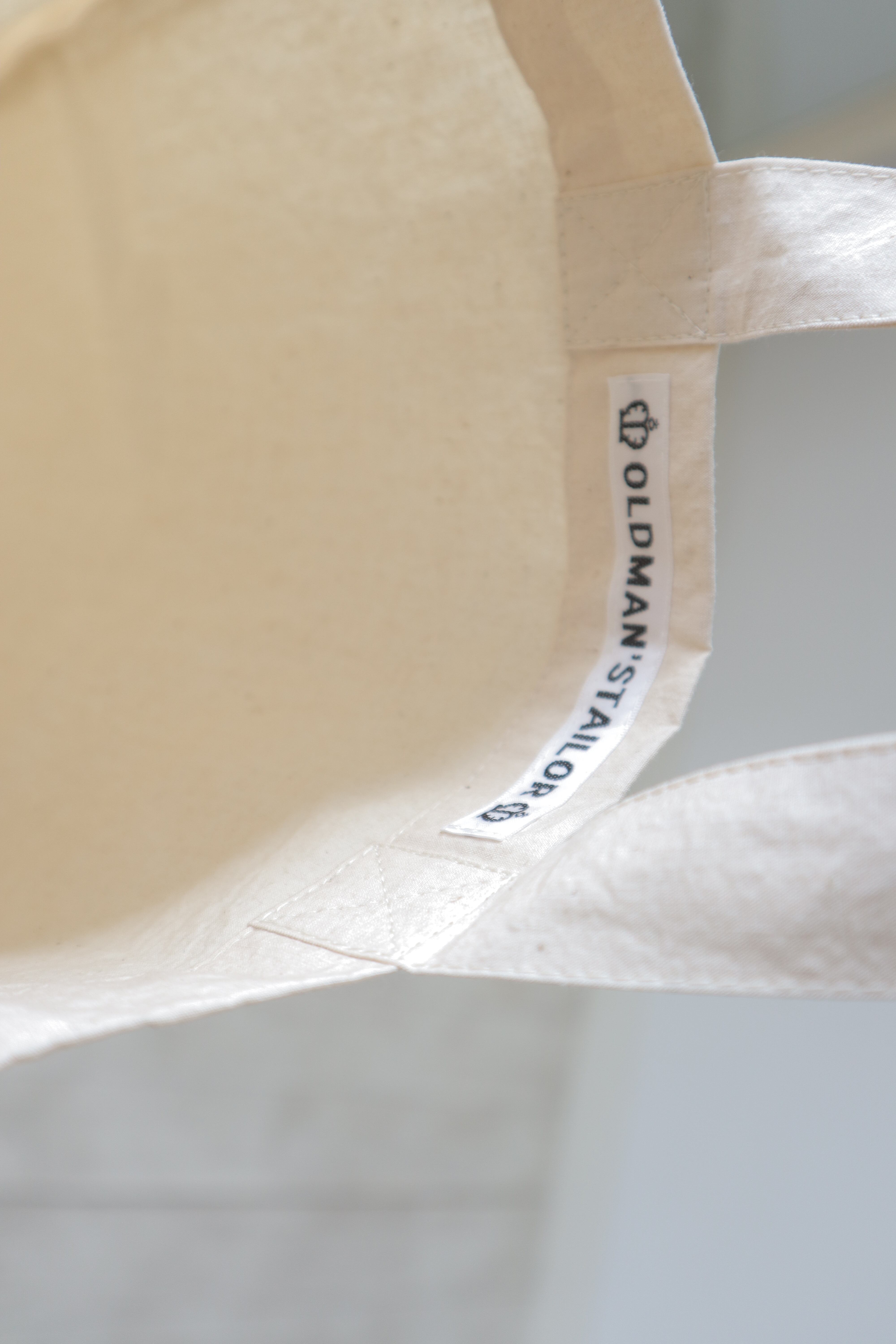 ロゴがアクセントになったメンズブランドOLDMAN’S TAILORのトートバッグ、ミニサイズです。使いやすいサイズ感で、デイリーに活躍するバッグです。