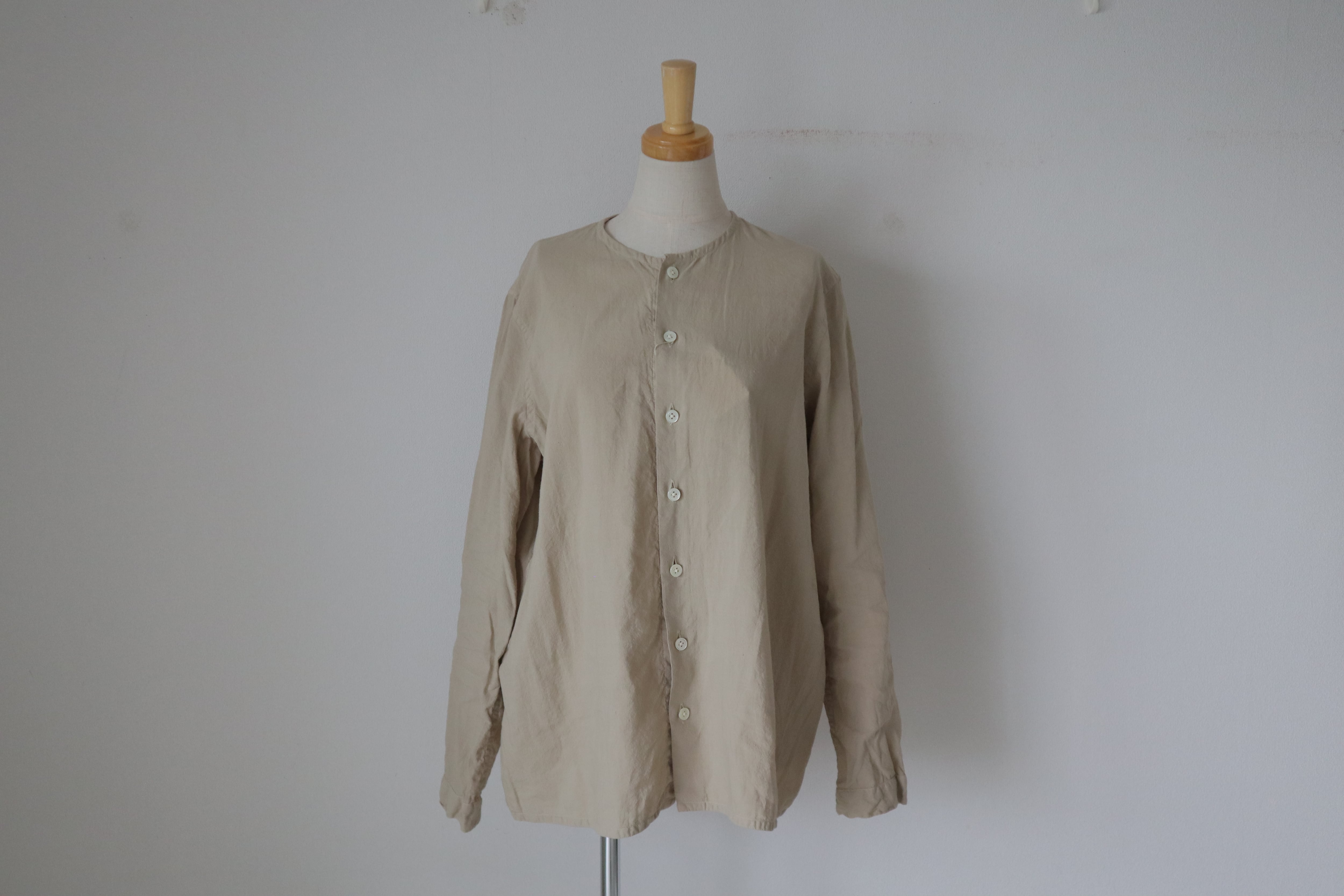 ガーメントダイ加工が施されたGARMENT DYE CREW NECK SHIRT JACKET。長袖ブラウスとしても、ジャケットとしても活躍する優れものです。スタンドカラーとフロントボタンがポイントで、さりげないおしゃれ感を演出。身に着けるだけでコーディネートがグッと引き締まります。