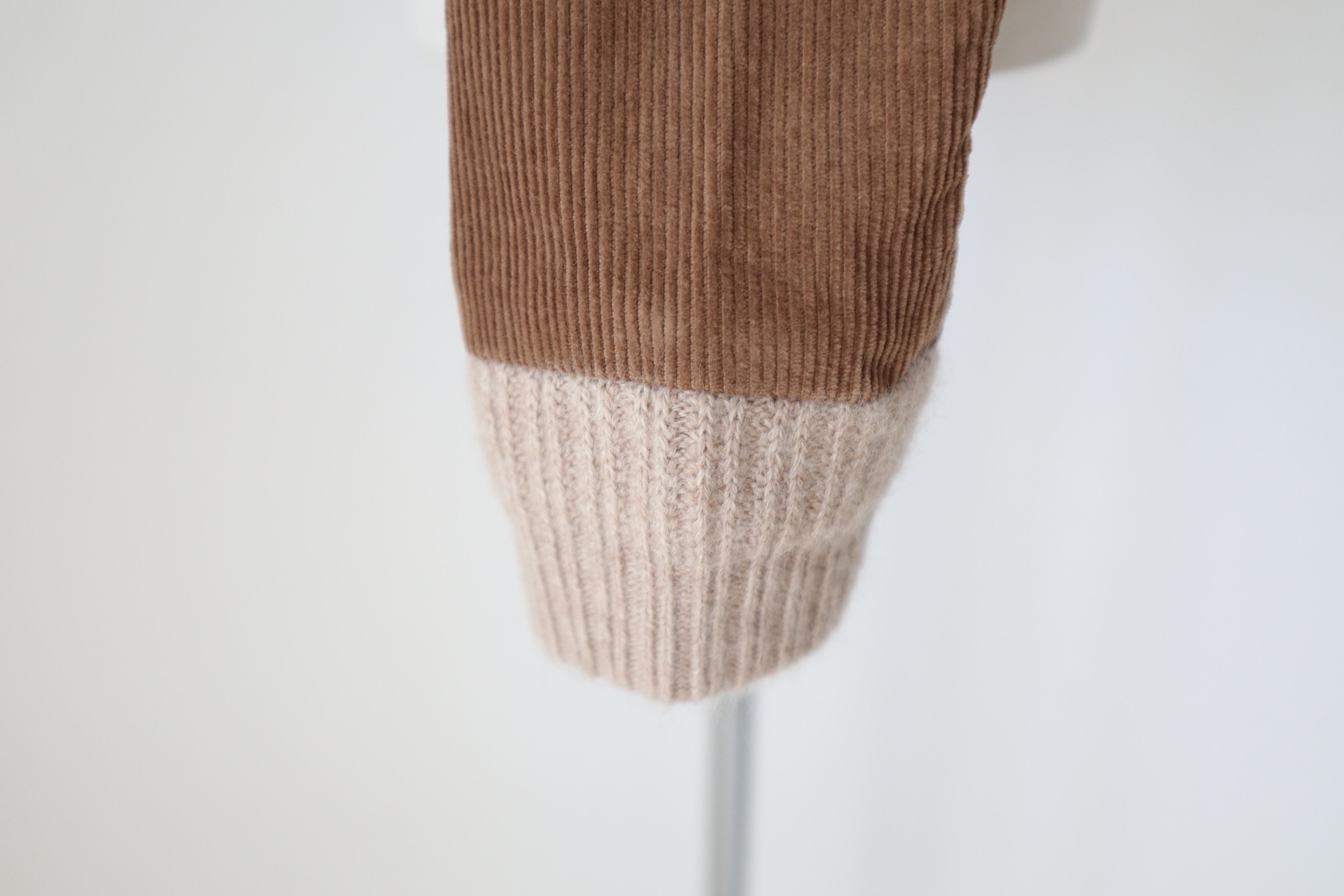 コーデュロイ素材を使用したCORDUROY JACKETは、秋冬のスタイルにぴったりの一品です。袖のニット部分がおしゃれなアクセントとなり、カジュアルながらも洗練された印象を与えます。ソフトで温かみのあるコーデュロイの質感は、コーディネートに自然に溶け込み、季節感を演出します。