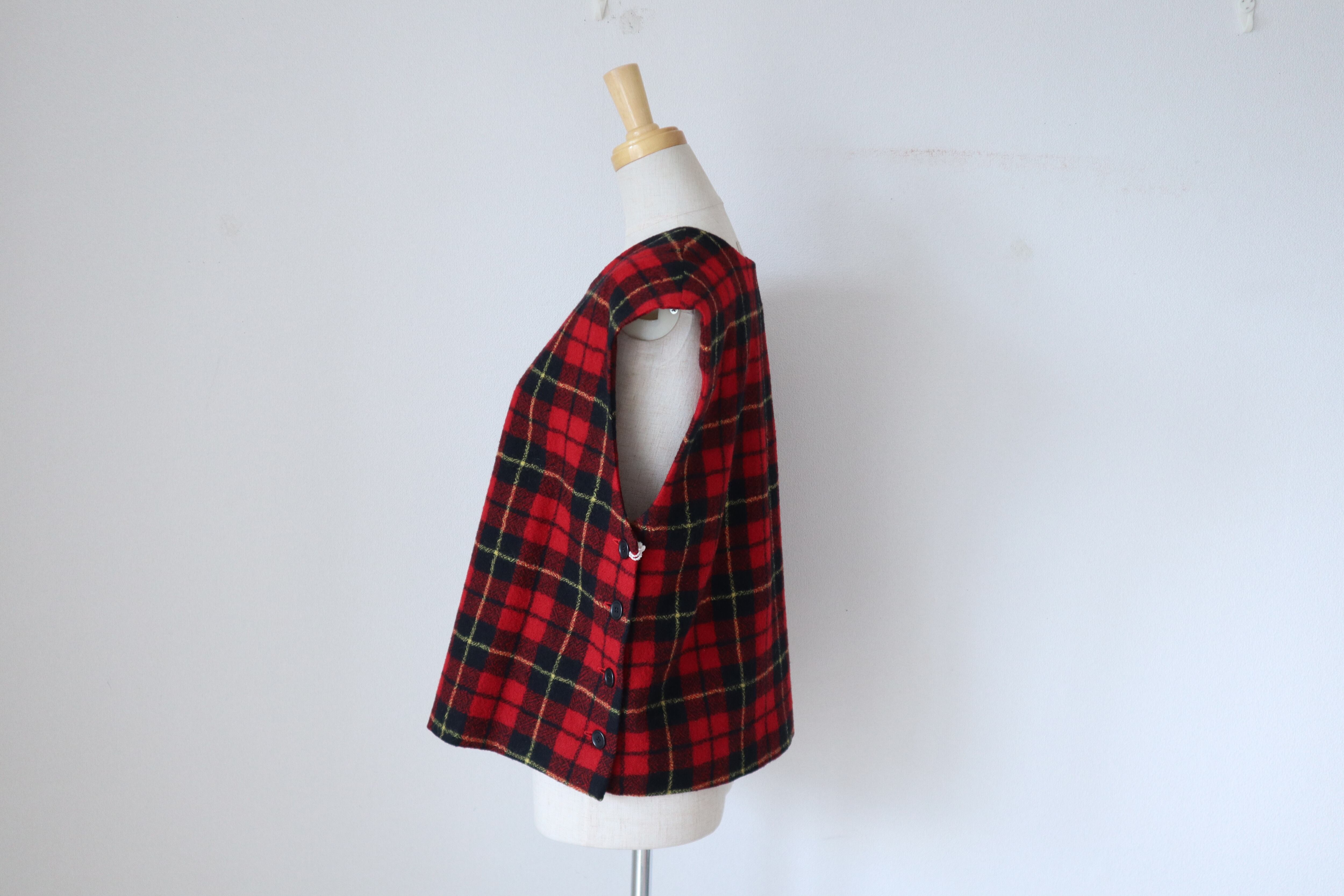 秋冬シーズンにぴったりのウール素材を使用したベスト感覚で楽しめるアイテムです。ブロックチェックデザインが特徴で、温かみのあるブロックチェックが季節感を演出します。カジュアルなスタイルに合わせても、少し特別なシーンでも活躍できる柔軟性を持ち合わせています。しっかりとしたウール素材が、心地よい着心地を提供し、寒い季節でも快適に過ごせます。コーディネートしやすく、ぜひワードローブに加えていただきたい一枚です!