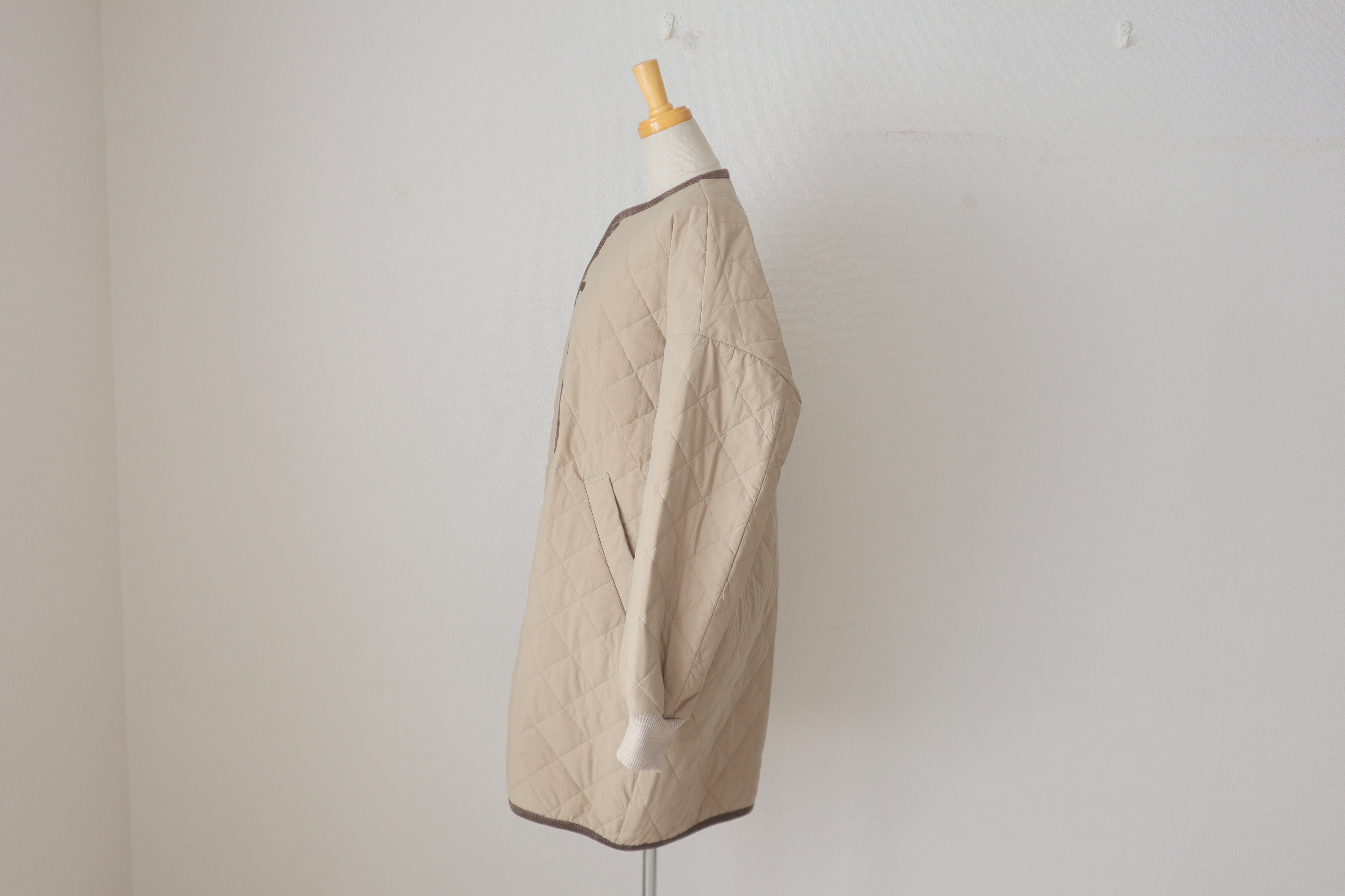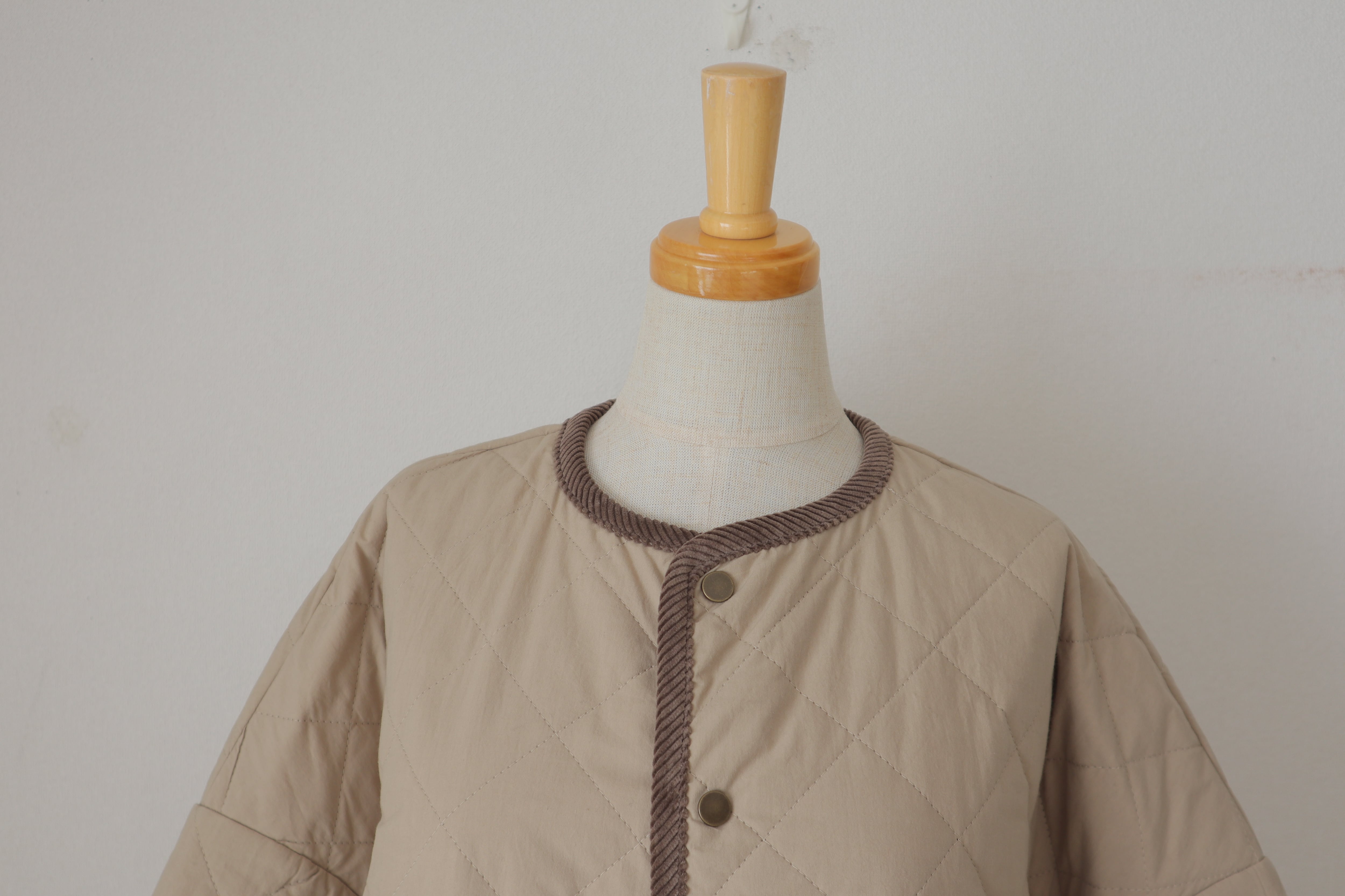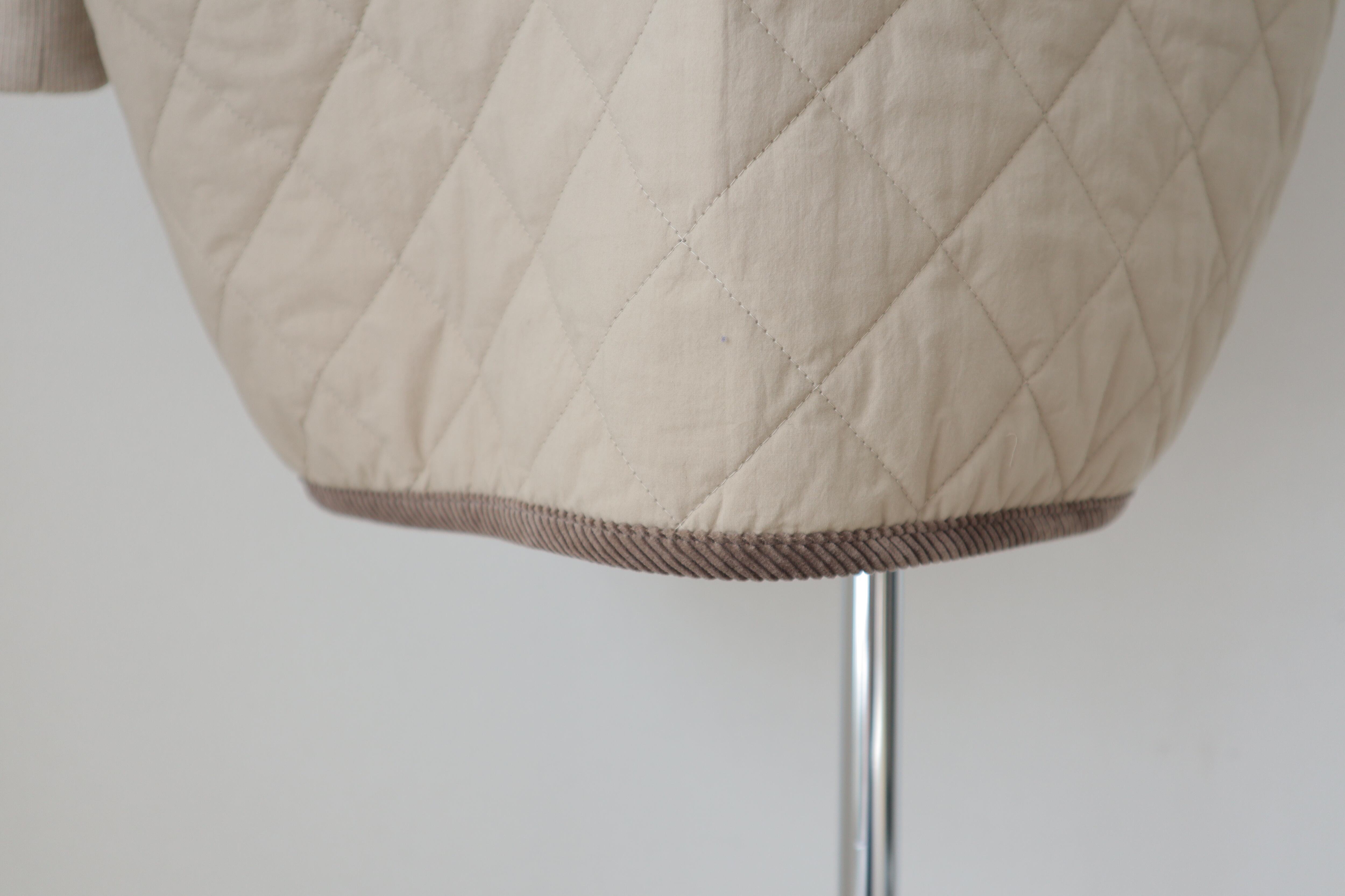 QUILTING HALF COATは、コーデュロイのトリミングとキルティング素材を使用した、おしゃれで洗練されたハーフコートです。カジュアルにもフォーマルにも合わせやすいデザインで、スタイルにさりげないアクセントをプラスします。特にコーデュロイのトリミングが、全体の印象をぐっと引き立て、個性的な魅力を発揮します。寒い季節にぴったりなアイテムで、日常のお出かけや特別なシーンでも活躍すること間違いなしです。