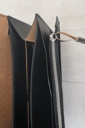 SHOULDER WALLETは、上質な牛革素材を使用したショルダーウォレットです。シンプルながらも洗練されたデザインで、普段使いや特別なシーンでも大活躍するアイテムです。ポケットが2箇所、ファスナーが1箇所付きで、収納力も抜群。最大15枚のカードをスッキリと収納できるため、クレジットカードやポイントカードの整理も簡単に行え、後ろポケットはiPhoneが入るサイズです。