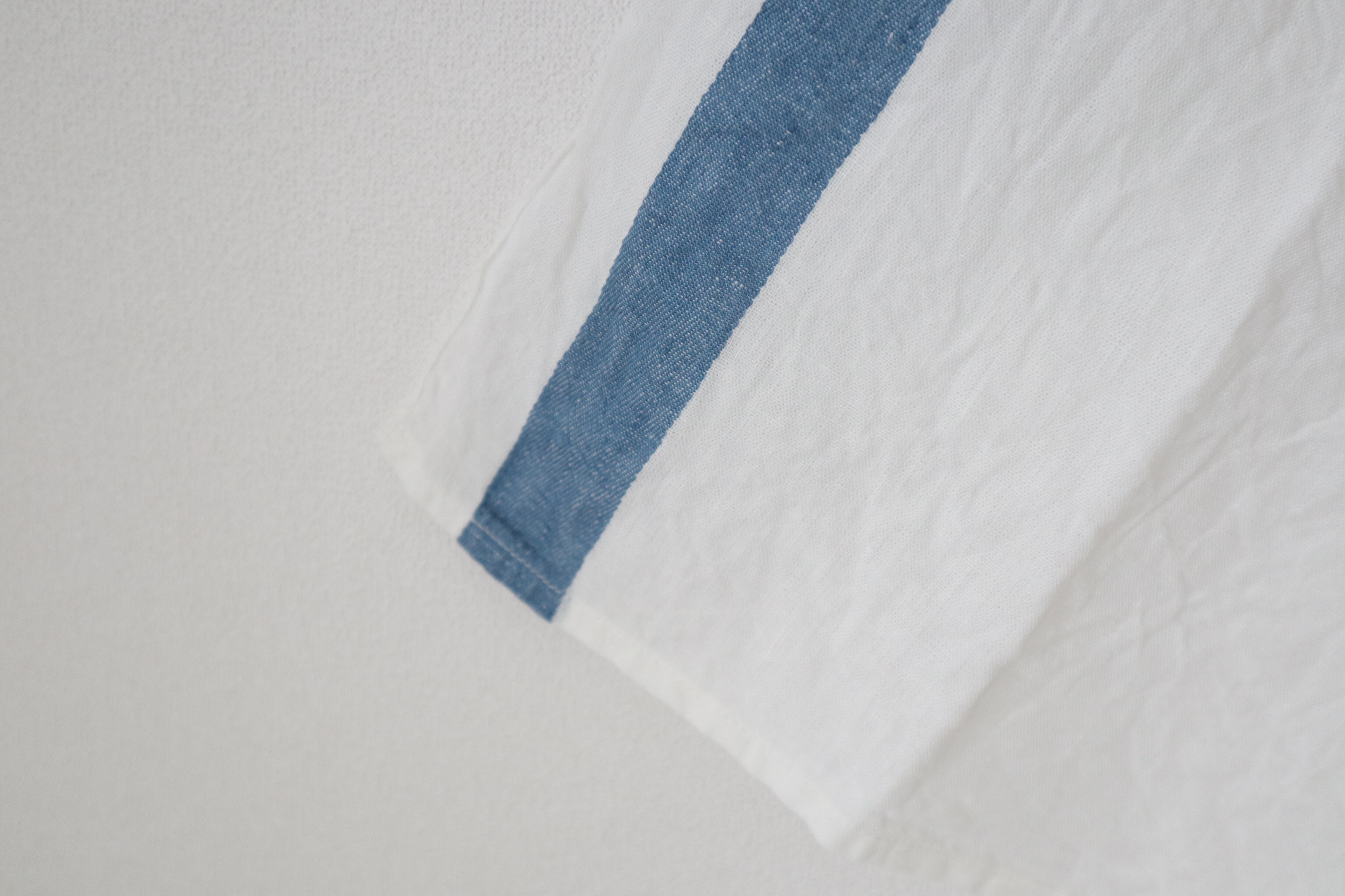 KITCHEN CLOTHは、鮮やかなブルーのラインが印象的なリネン100%のキッチンクロスです。このクロスは、優れた吸水性を備えており、キッチンでの使用はもちろん、さまざまなシーンで役立ちます! R.D刺繍が施されており、シンプルなキッチンや食卓に洗練されたアクセントを加えます。